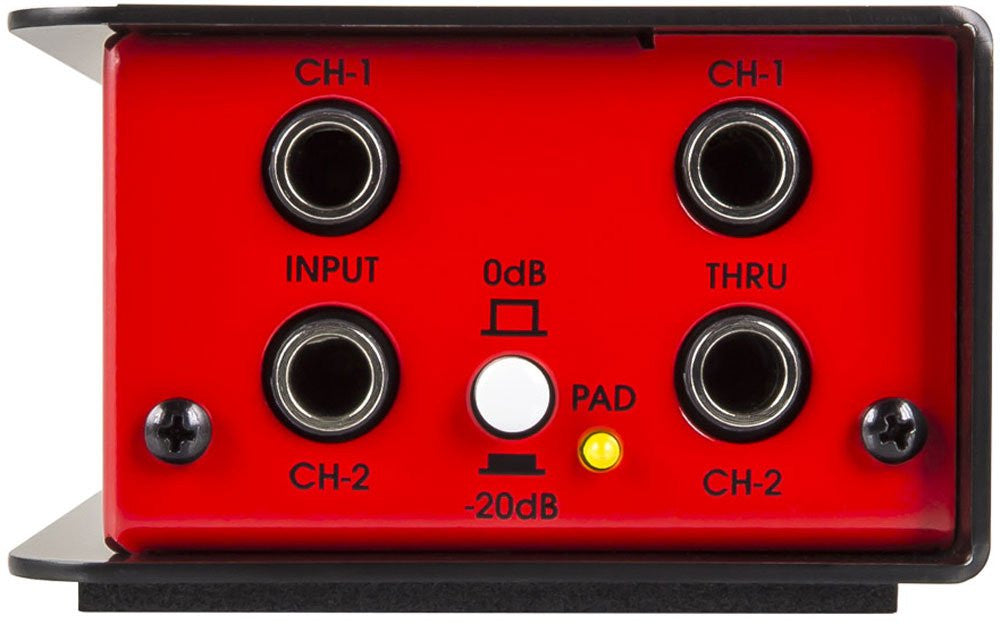 PAD-Schalter — reduziert das Eingangslevel um 20 dB, um Verzerrungen durch hochpegelige Signale zu vermeiden.